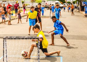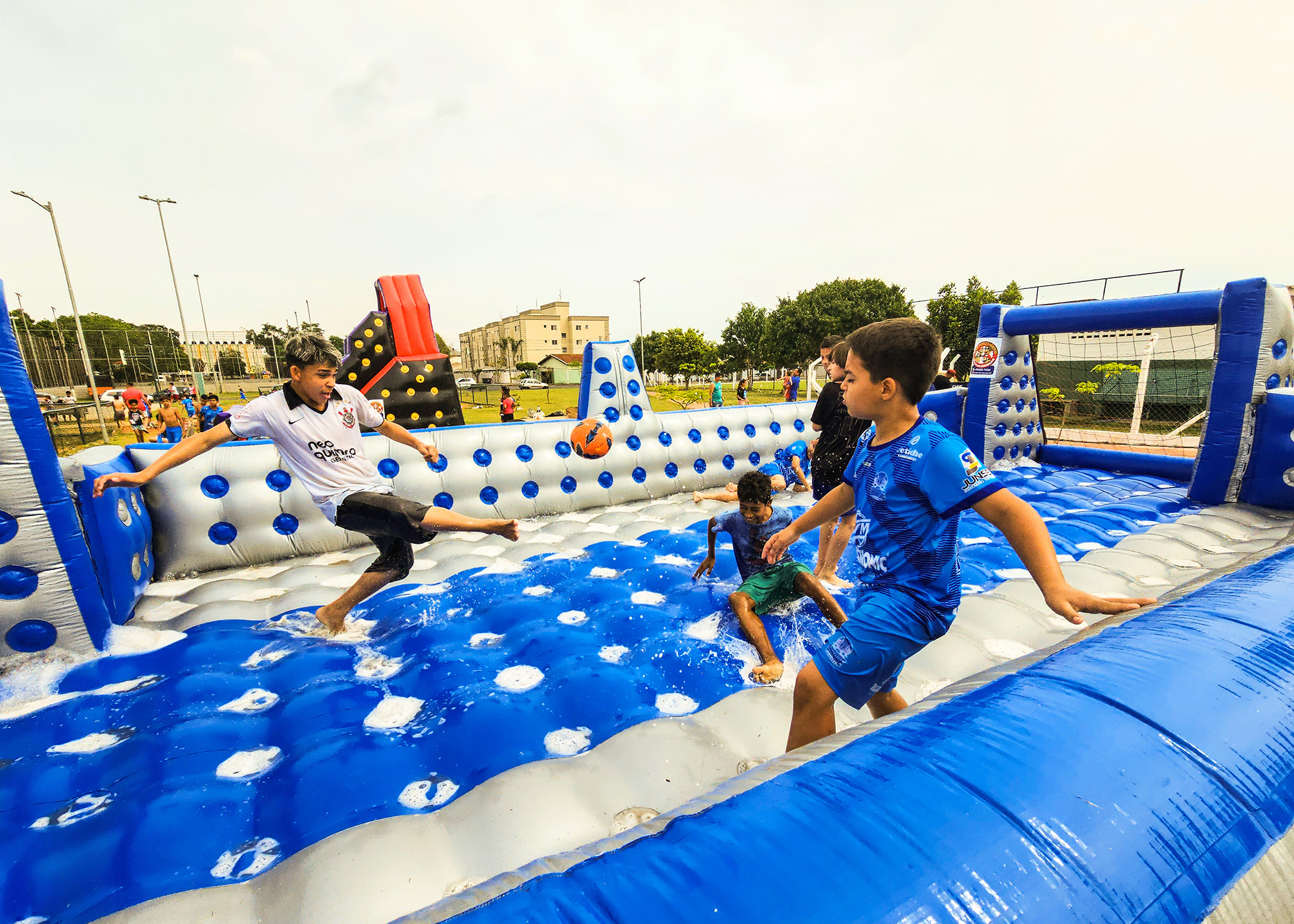 Os voluntários do projeto começaram cedo, fazendo os cachorros-quentes às 6h30. Às 7h40 as crianças já faziam fila para as inscrições de suas equipes para o futebol. Às 8h30 começaram os jogos na rua e na quadra, sob o comando dos professores do “Bosque dos Sonhos”. Os brinquedos infláveis garantiram a diversão das crianças a manhã toda, incluindo o futebol de sabão.