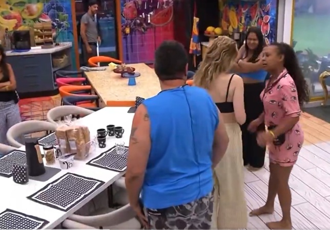 Em seguida, Sol foi até o quarto dos rivais e bateu na porta ao gritos de “acorda”. A briga continuou na cozinha da casa, com Ana Paula rebatendo. “Se não quiser ser provocada, o botão de desistência tá ali”, disse ela para todos.