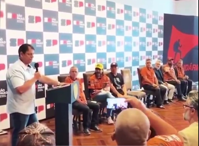 O governador Tarcísio de Freitas recebeu o grupo cristão Legendários no Palácio dos Bandeirantes, em reunião liderada pelo pastor Alexandro Claudino, da Igreja Batista Vinho Novo.