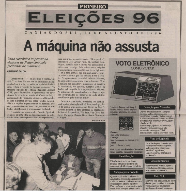 Capa do jornal Pioneiro, de Caxias do Sul, estampou: “A máquina não assusta”, em 1996