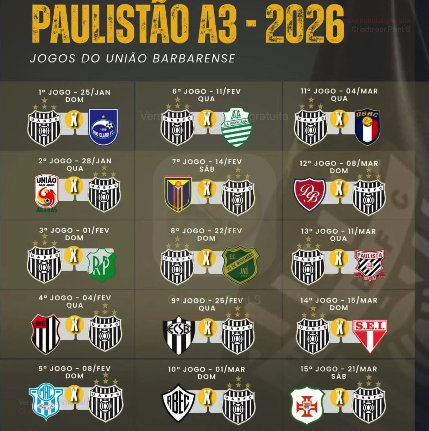 A tabela oficial dos jogos do União Barbarense está pré-definida e a missão já tem data para começar!